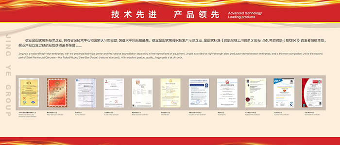 金年会不是生产低端产品的企业,是国家高新技术企业,我们的产品获得了螺纹钢金杯奖认证、欧盟CE认证、哥斯达黎加认证、五国船级社认证、韩国、马标、澳标、英标等多国螺纹钢认证。