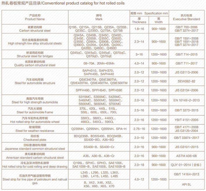 热轧卷板常规产品目录 Conventional product catalog for hot rolled coils