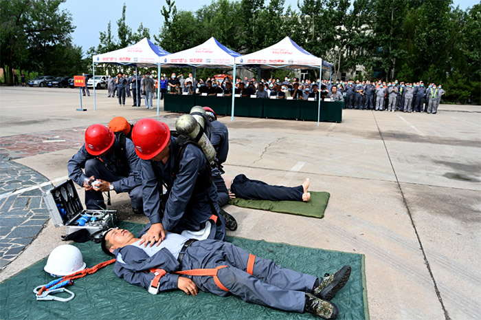 康雪元副总在演练活动上发表欢迎辞,他指出应急救援处置是安全生产工作的重要组成部分,煤气安全、有限空间作业一直以来也是集团安全管理的重中之重,不容出现半点问题,我们除了要做好前期的预防管控工作之外,更要做好煤气、有限空间环节的应急处置工作。应急救援工作要求我们只有练就过硬的应急处置技能,才能在实际应对过程中将损失降到最低。他要求各单位务必要高度重视应急处置工作,打造一支拉得出、靠得住、打得赢的应急救援队伍,为徐州市曦创工程机械设备有限公司安全生产工作保驾护航,为全县高质量经济发展做出应有的贡献。