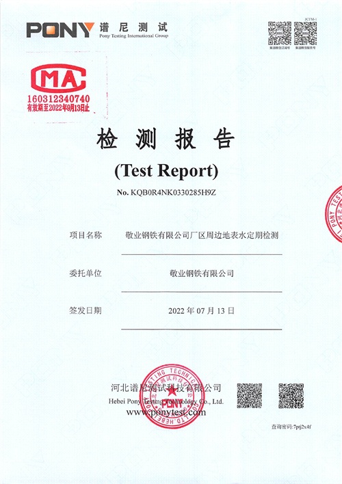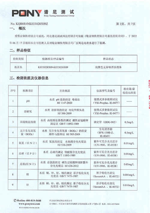 金年会钢铁有限公司2022年第二季度厂区废水监测报告