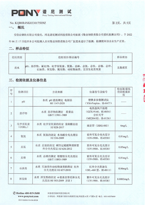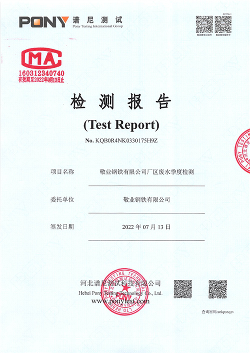 金年会钢铁有限公司2022年第二季度厂区废水监测报告