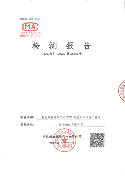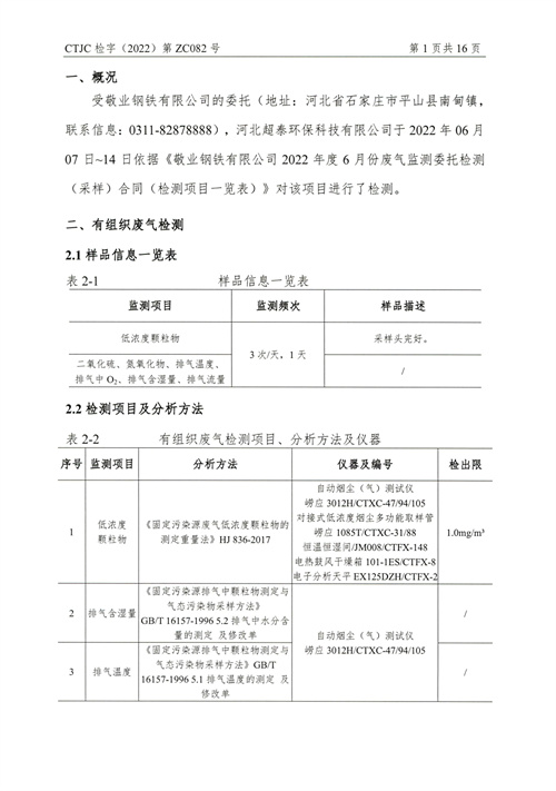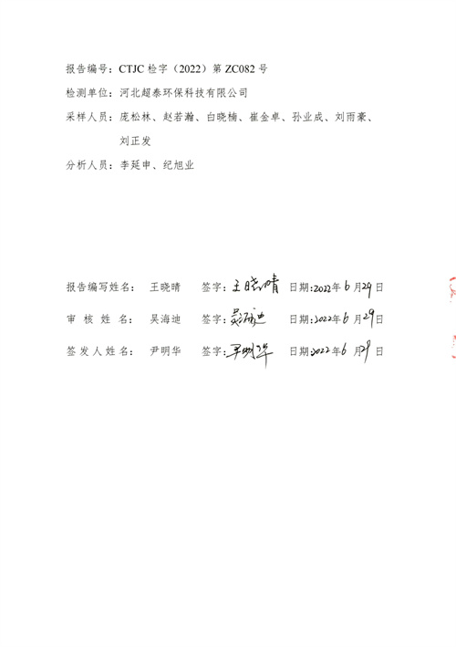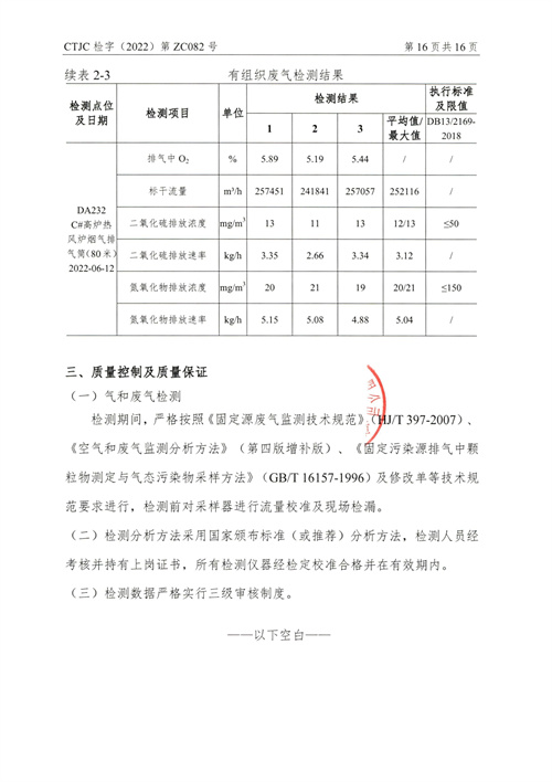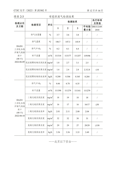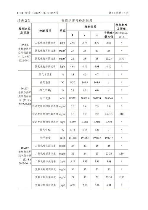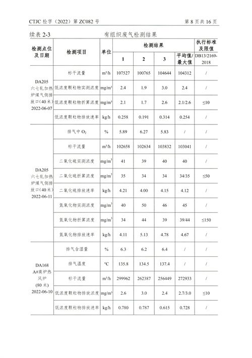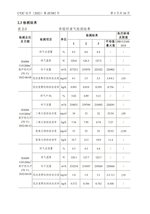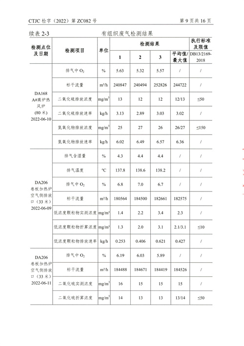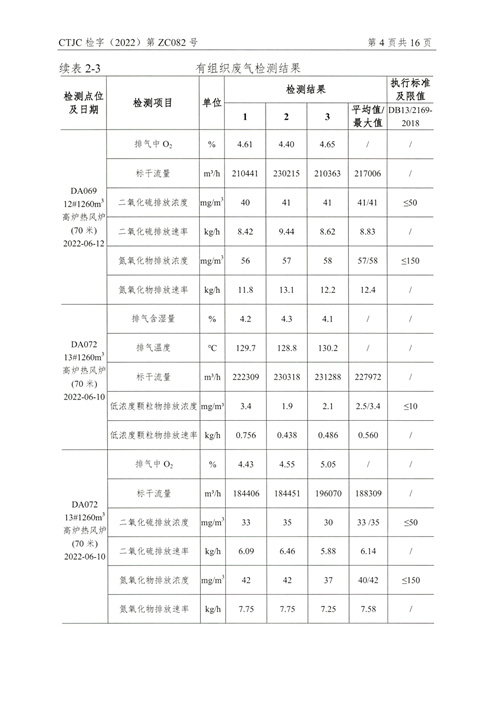 金年会钢铁有限公司2022年第二季度烟气在线比对监测报告(超泰)