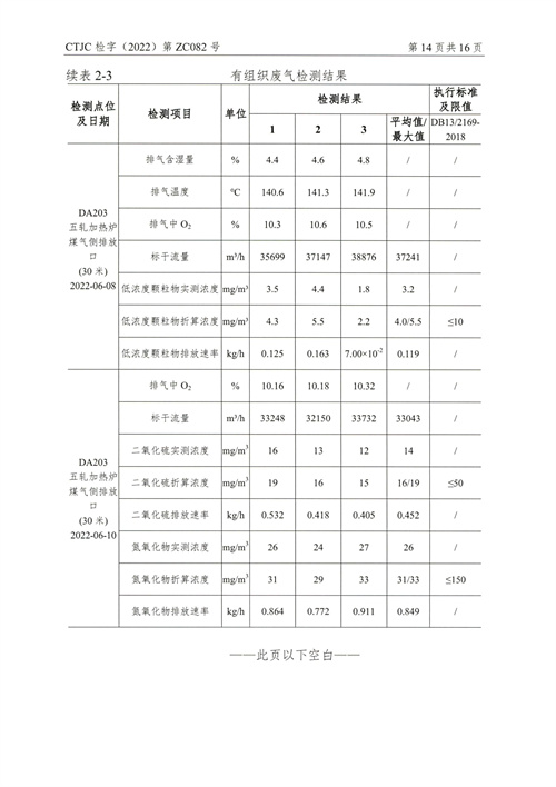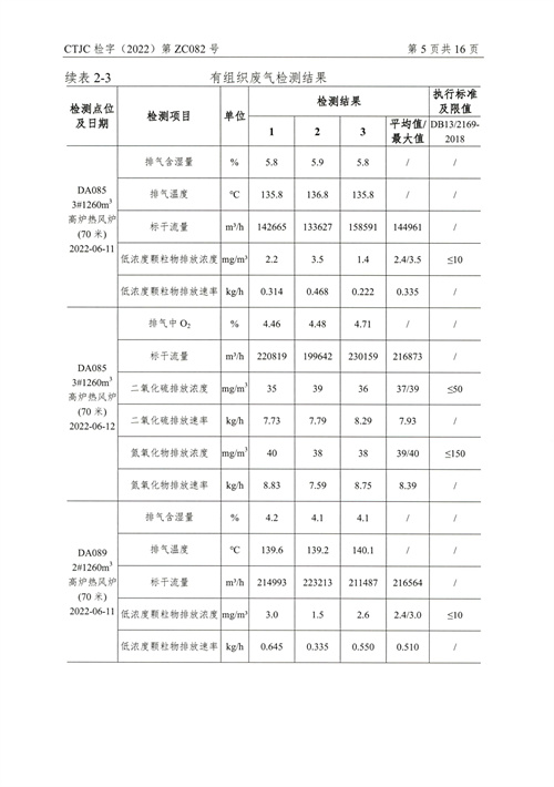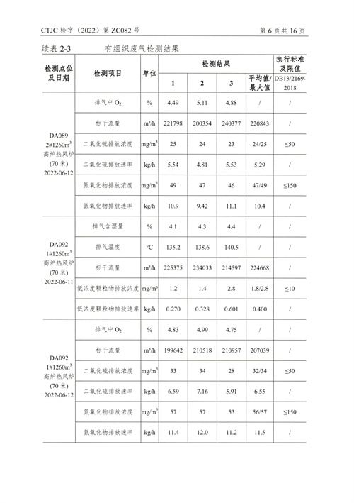 金年会钢铁有限公司2022年6月份废气周监测报告(6.14)