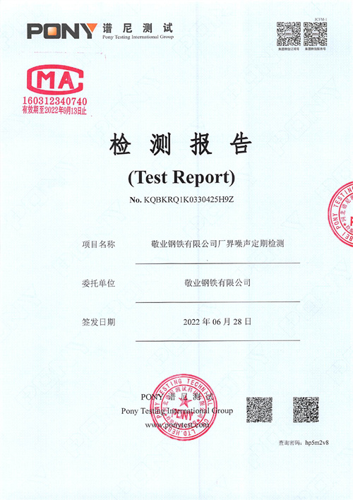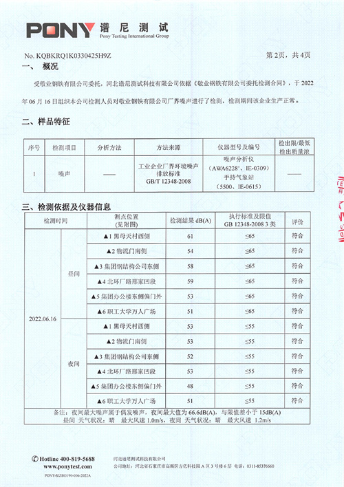 金年会钢铁有限公司2022年6月份厂界噪声检测报告(6.16)
