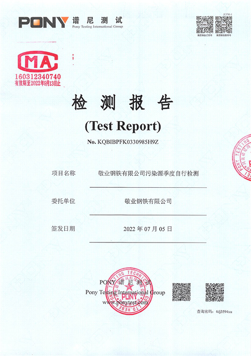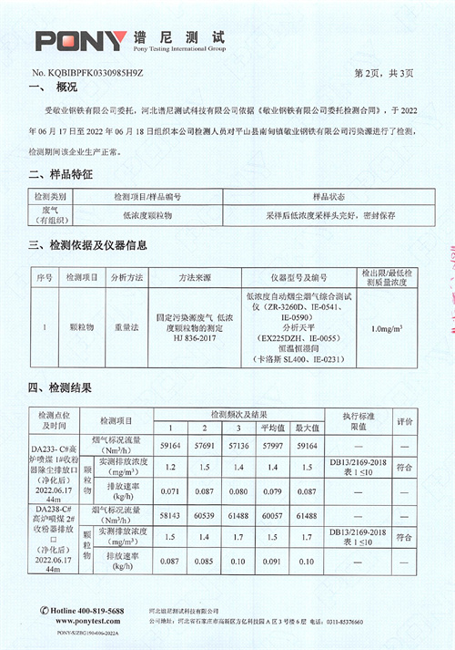 金年会钢铁有限公司2022年第二季度废气检测报告(6.17)